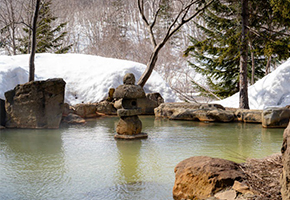 ニセコグランドホテルの温泉は、“美肌の湯”として 知られる 「メタケイ酸」を豊富に含んだ 源泉かけ流しの天然温泉。 肌にやさしく、体の芯からじんわりと 温まる湯を、館内で湯めぐり 気分とともにお楽しみいただけます。